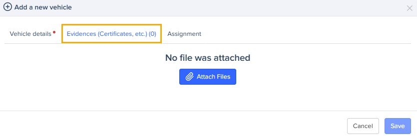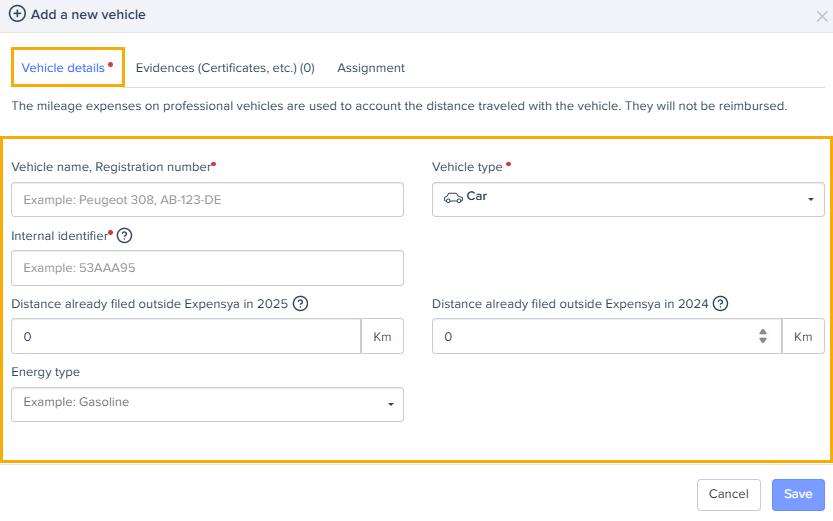 - Fill in the fields in the Vehicle details tab. A red dot marks each mandatory field.