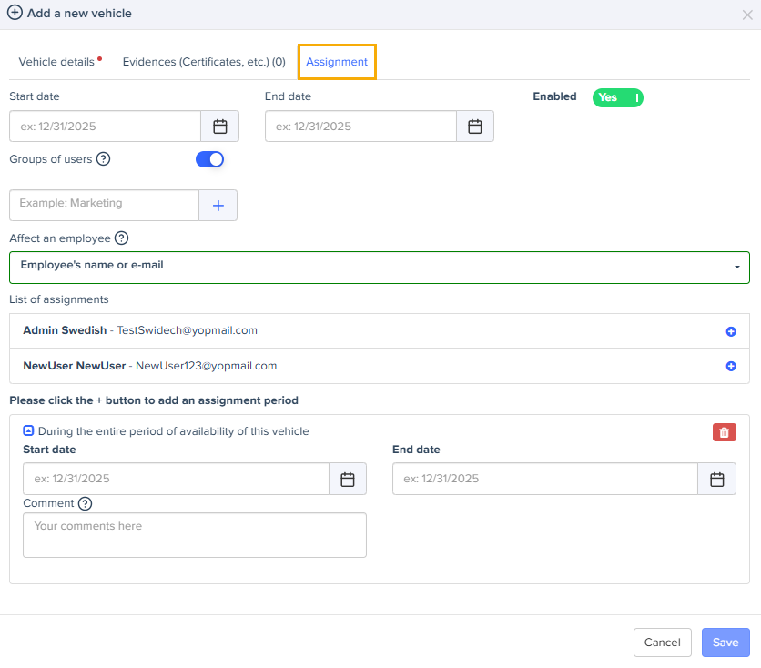 - AffectedUserMail - email of the person assigned to the vehicle.