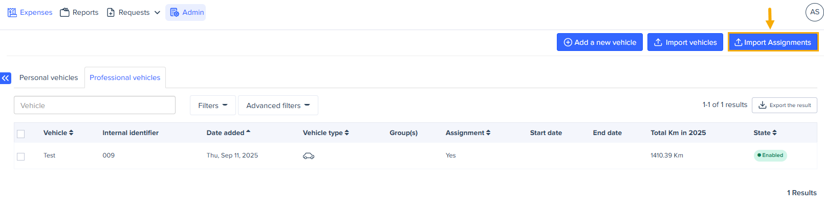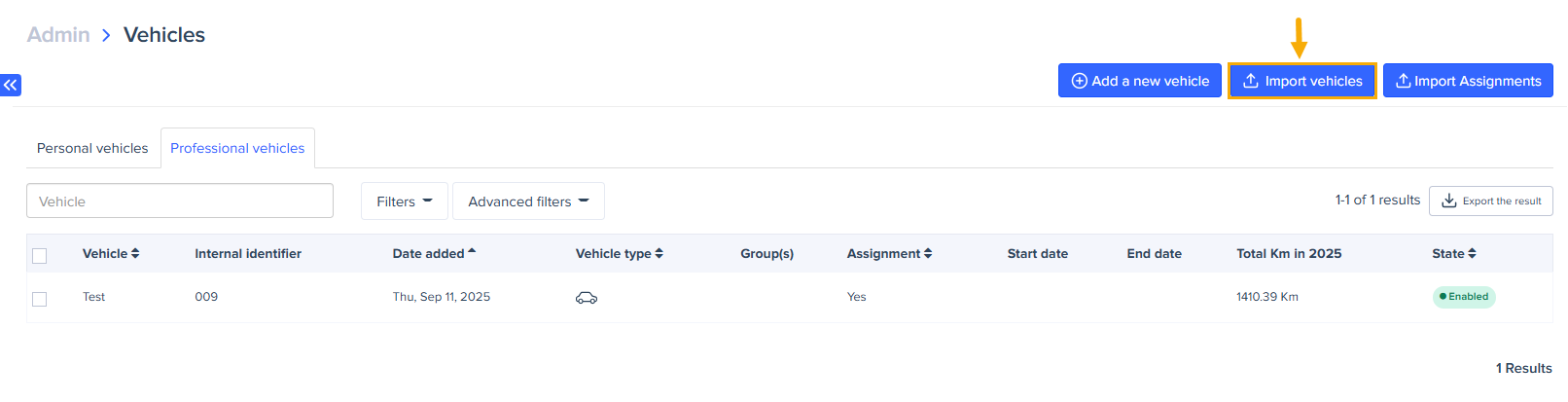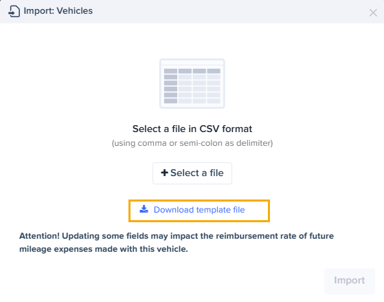 - After filling out the template, import it. A pop-up window will confirm the import and display a summary of imported and updated vehicles.