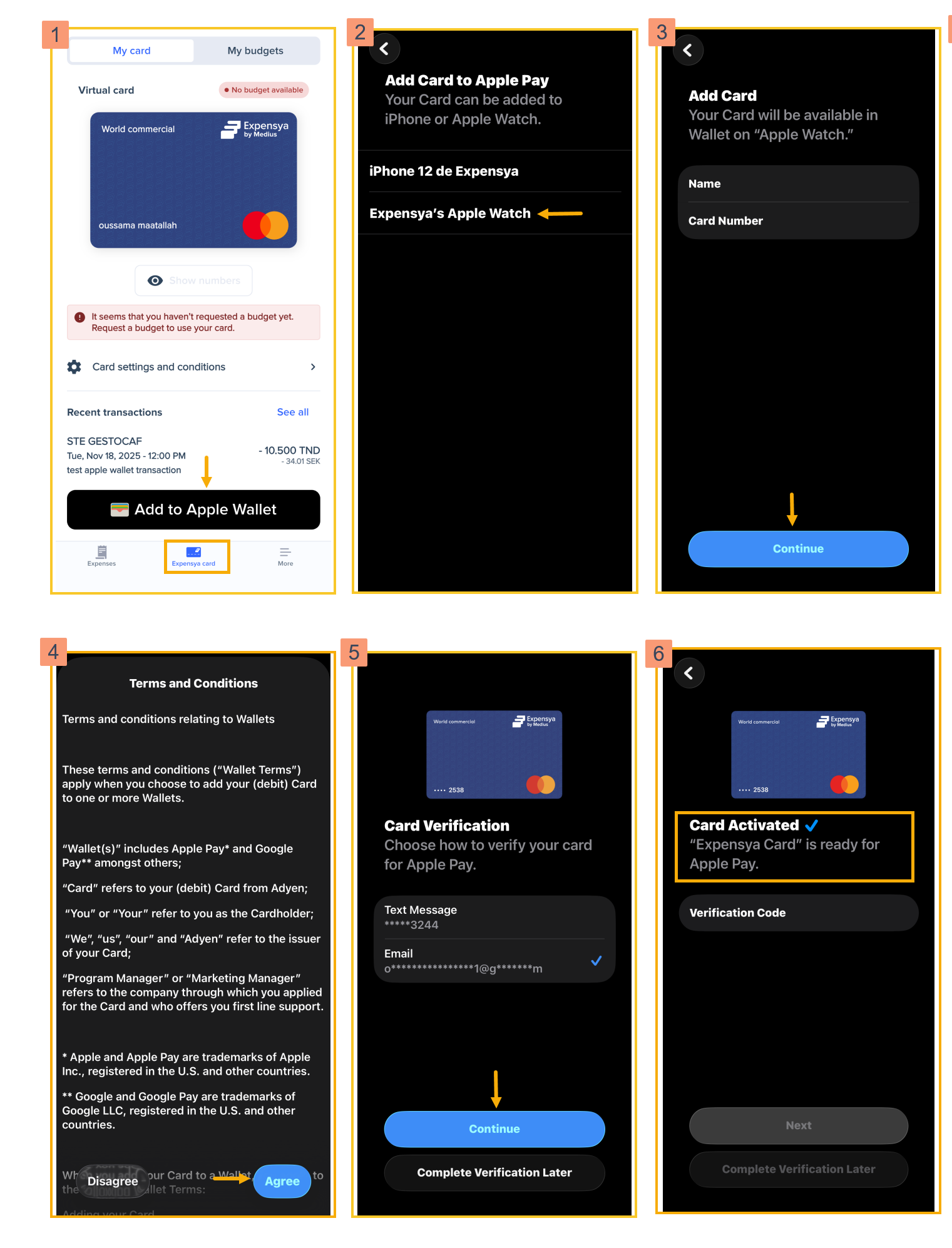 - Open the Expensya app on your iPhone and go to Expensya Card, then tap Add to Apple Wallet.