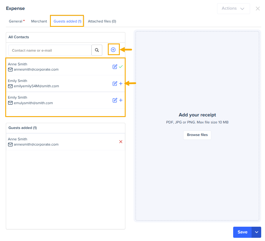 With Expensya, you can add guests to your expenses from the web or the mobile app.