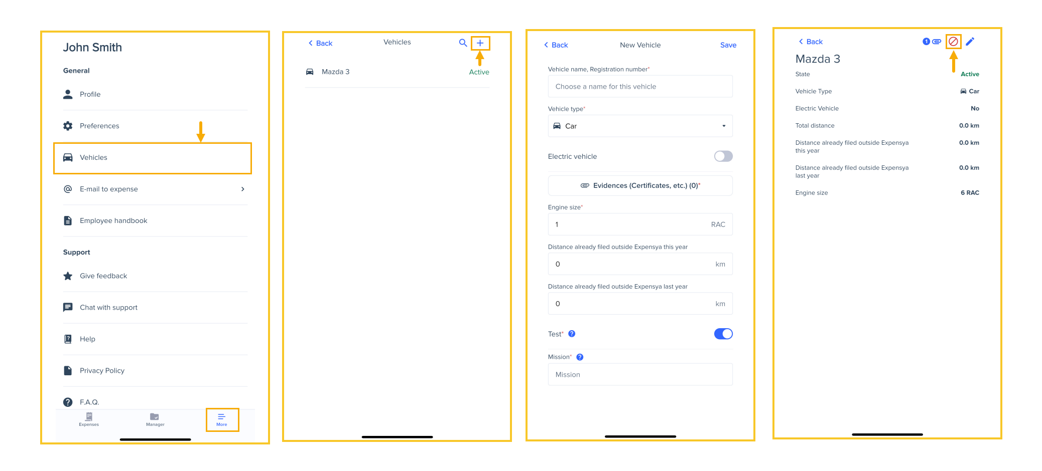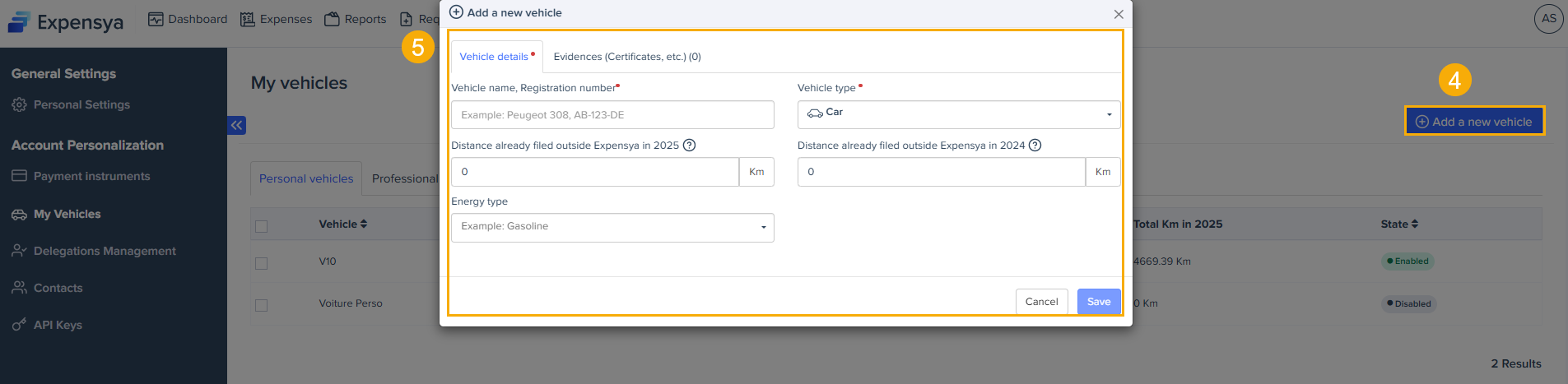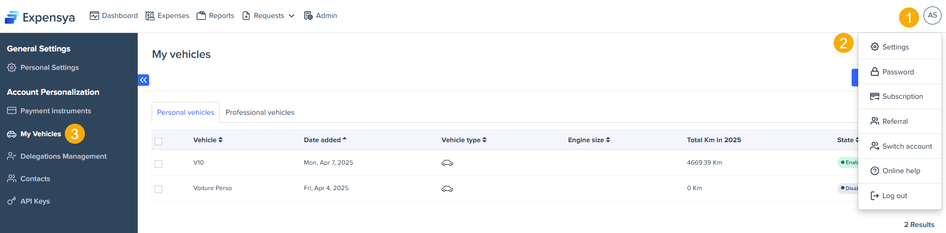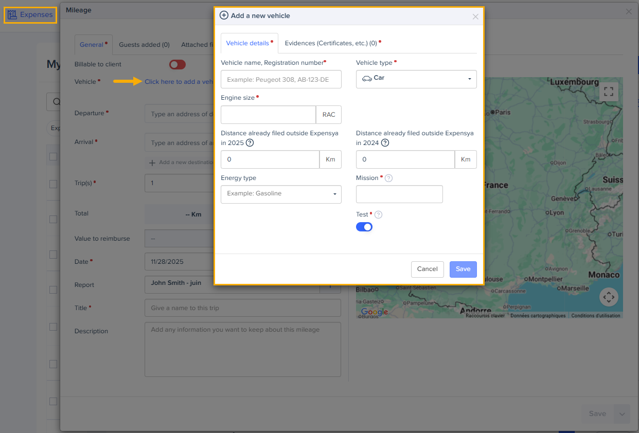 Expensya lets you manage your vehicles easily from both the web and mobile.
