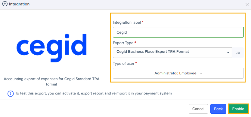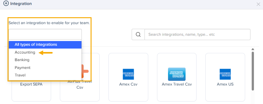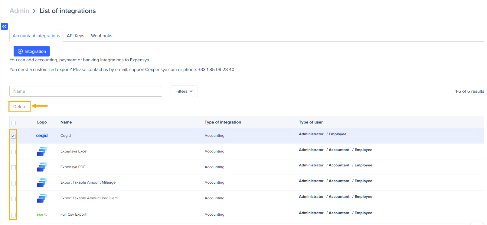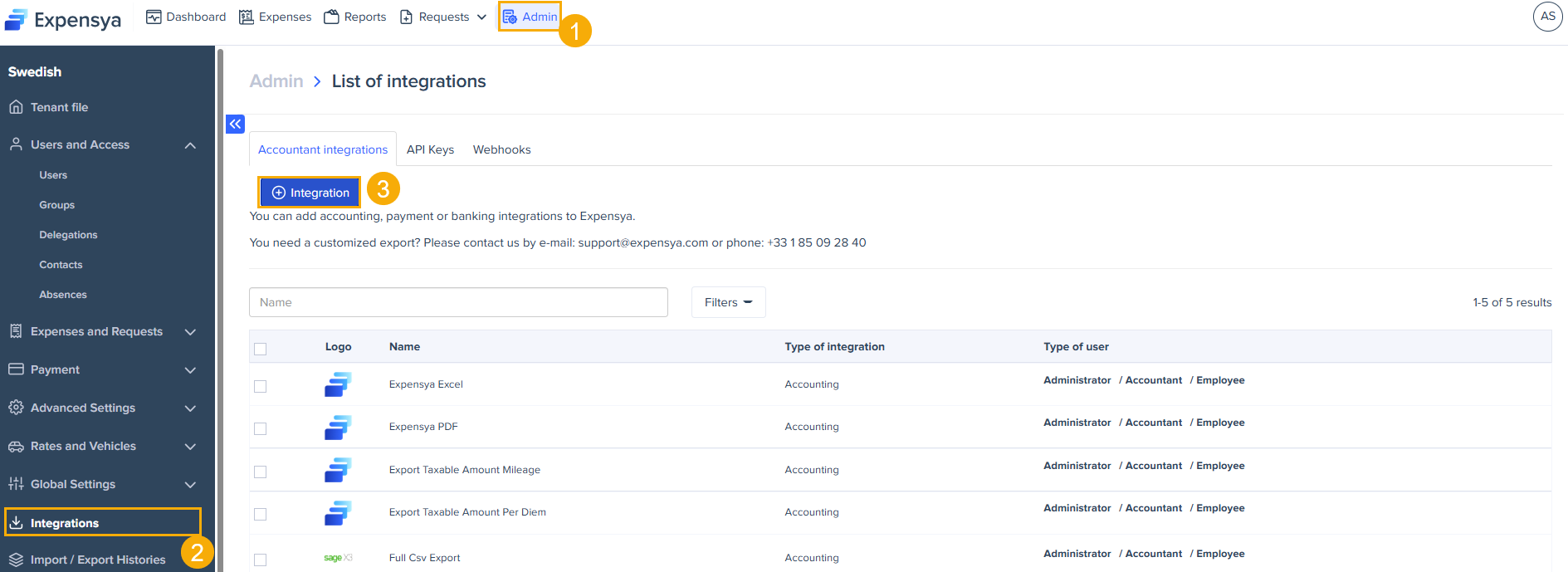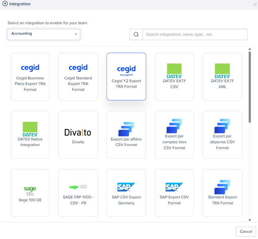 Expensya lets you export your reports in several formats through the Integrations submenu.