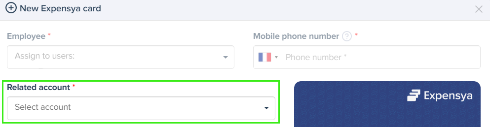 - Click Add Expensya card, then enter the following information: