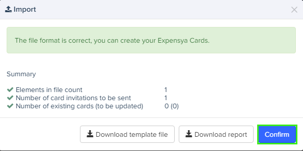 Option 2: Add multiple virtual Expensya cards in bulk