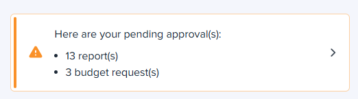 When connecting to their accounts, the approvers find a message informing them of the presence of reports that need to be reviewed.