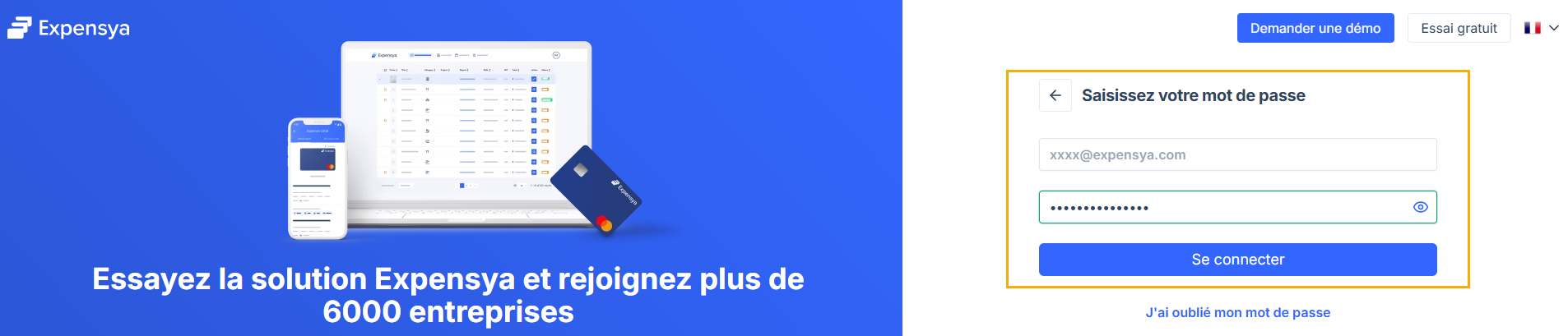 Après avoir reçu l’invitation de votre entreprise et activé votre compte, vous pouvez vous connecter et utiliser Expensya sur le web et sur l’application mobile.