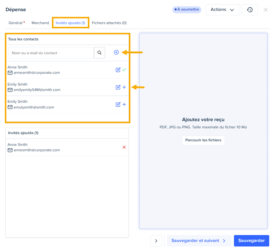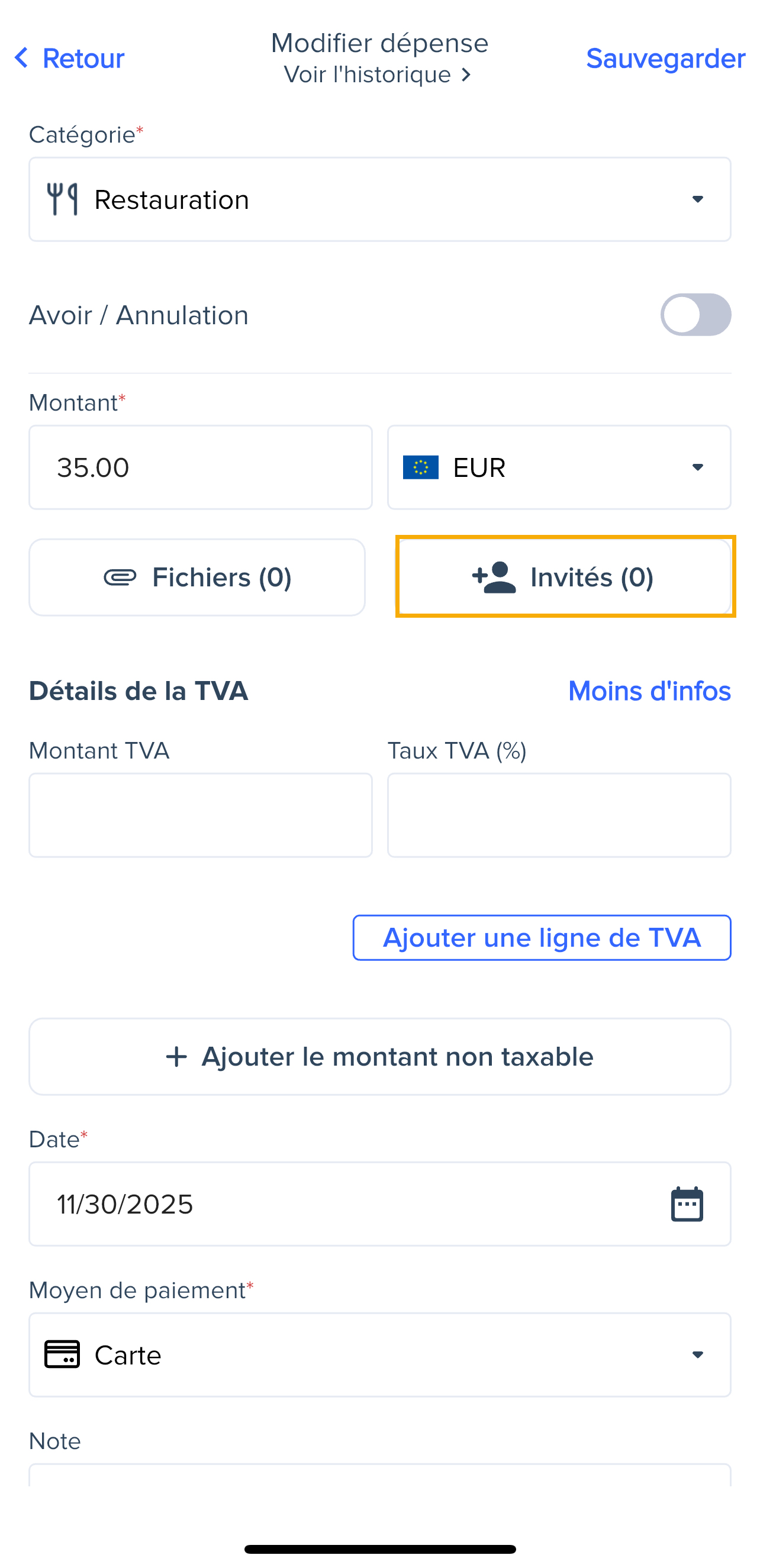 Avec Expensya, vous pouvez ajouter des invités à vos dépenses depuis le site web ou l'application mobile.