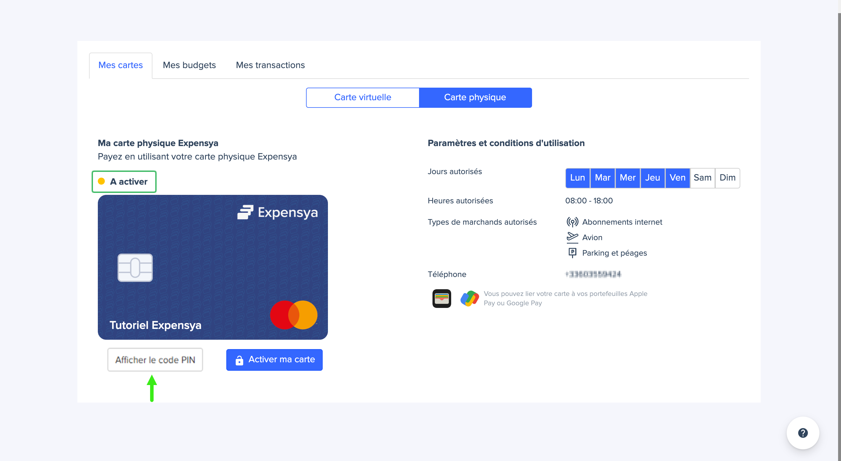 Dans ce cas, activez votre carte physique en réalisant votre premier achat en magasin avec le code PIN associé à la carte.