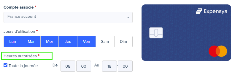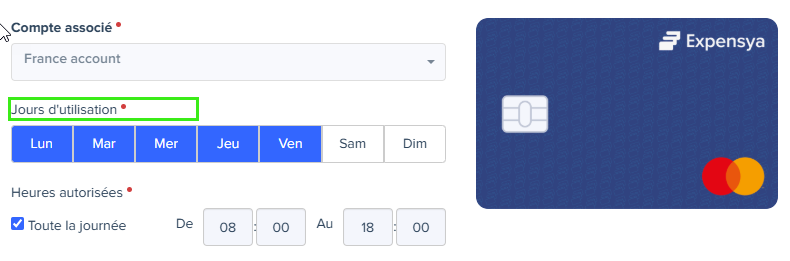 Pour mettre à jour les jours autorisés pour la carte, suivez ces étapes :