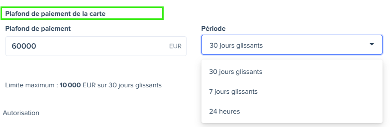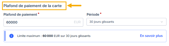 - Mettez à jour le montant dans le champ Plafond de paiement. Le montant maximal autorisé est de 60 000 €.
