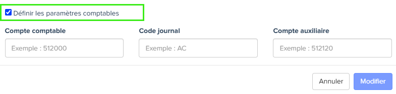 Pour mettre à jour les paramètres comptables, suivez ces étapes :